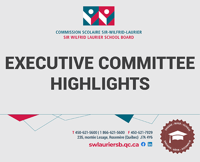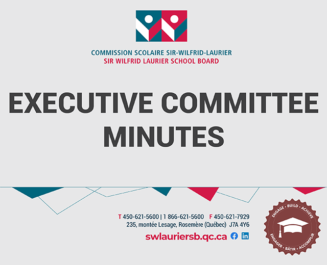 The Executive Committee of the school board is composed of the Chairperson, 4 commissioners and 1 parent commissioner. The Executive Committee term of office is of one year.