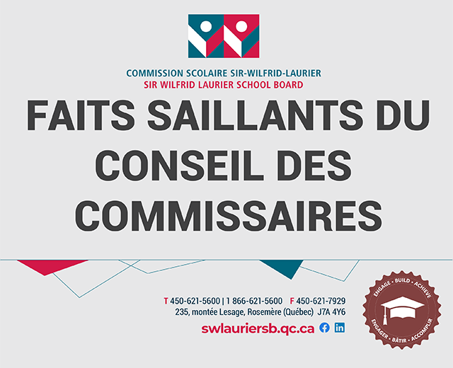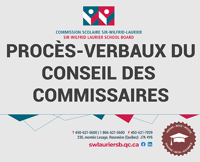 En raison des directives de la Santé publique et des mesures d’hygiènes quant à la COVID-19, aucun membre du publique ne peut être présent pour les séances du conseil des commissaires.
